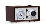 Tivoli Audio Model Three Clock Radio - Go shopping today for a clock radio and you'll mostly find big & bright digital displays, the sounds of nature, futuristic designs, and other modern amenities. Tivoli Audio however, takes a different path with the Model Three Clock Radio. It has a purely analog interface for both the clock, and the AM/FM radio, as well as being designed with an old-fashioned feel. While keeping a classic design, it does have modern features and superior audio technology inside. Sleek thumbwheel to set the alarm time constant, gentle illumination, external FM antenna & power supply included in a high gloss dark walnut and beige finish.